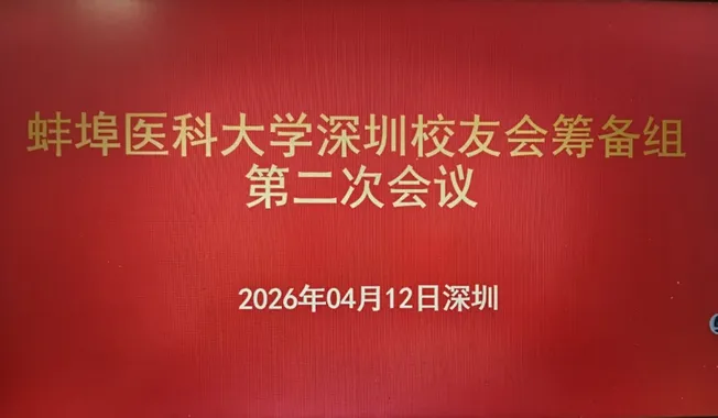 2026年4月12日下午,蚌埠医科大学深圳校友会筹备组第二次工作会议,在深圳市安徽蚌埠商会会议室顺利召开,深圳市安徽蚌埠商会秘书长徐明应邀出席会议。与筹备组成员一起共商校友会筹备事宜,凝聚校地联动、乡友同心的发展合力。