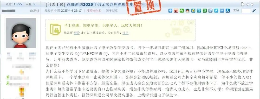 有网友表示,对丢卡深有同感,支持开通深圳通学生电子卡,免去丢卡的烦恼。