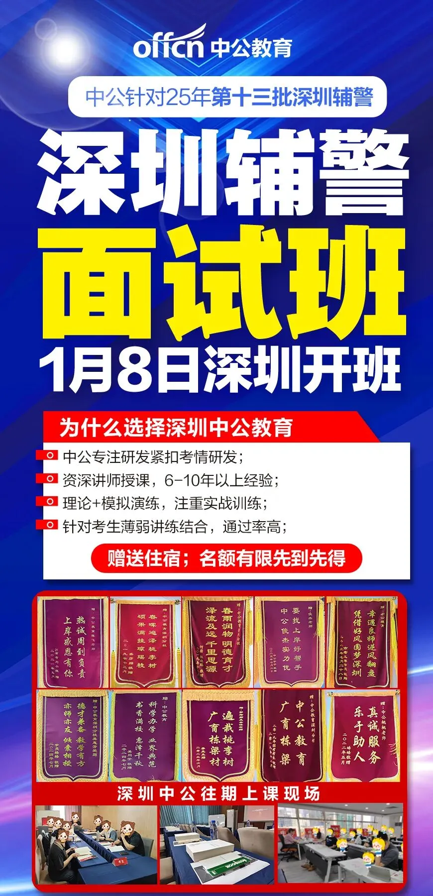深圳中公教育专注辅警笔试、辅警面试、考公考编20年+,上市公司,行业标杆。全职讲师经验5-15年,本地研发。线上线下结合,设有大班、小班,一对一针对考情辅导。