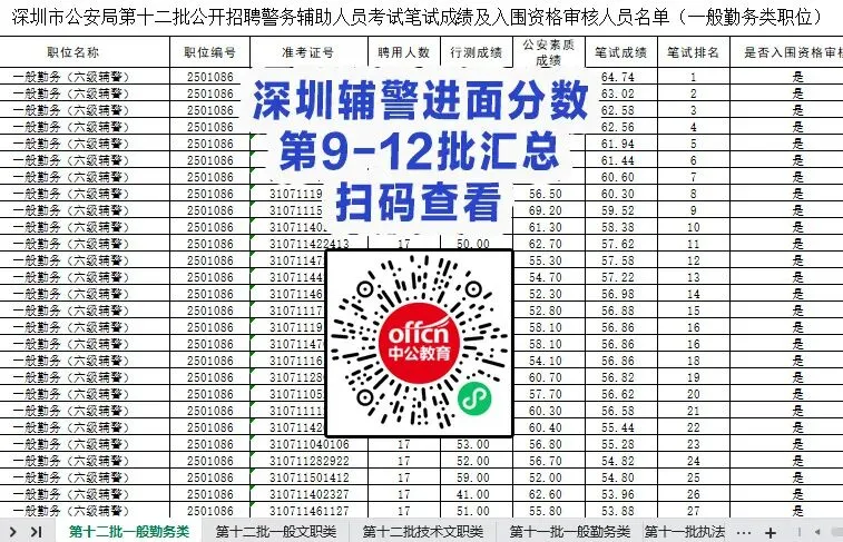 深圳辅警进面分汇总(第9-12批)