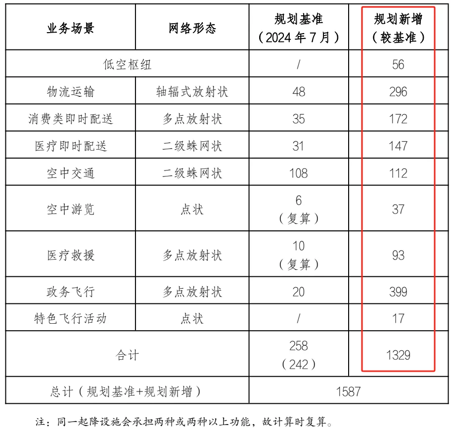 56个低空枢纽中,18个为综合枢纽、28个为货运枢纽、10个客运枢纽。
