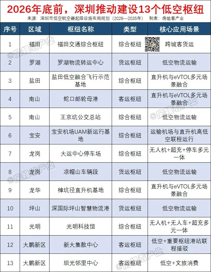 2026年底前,深圳建设13个低空枢纽: