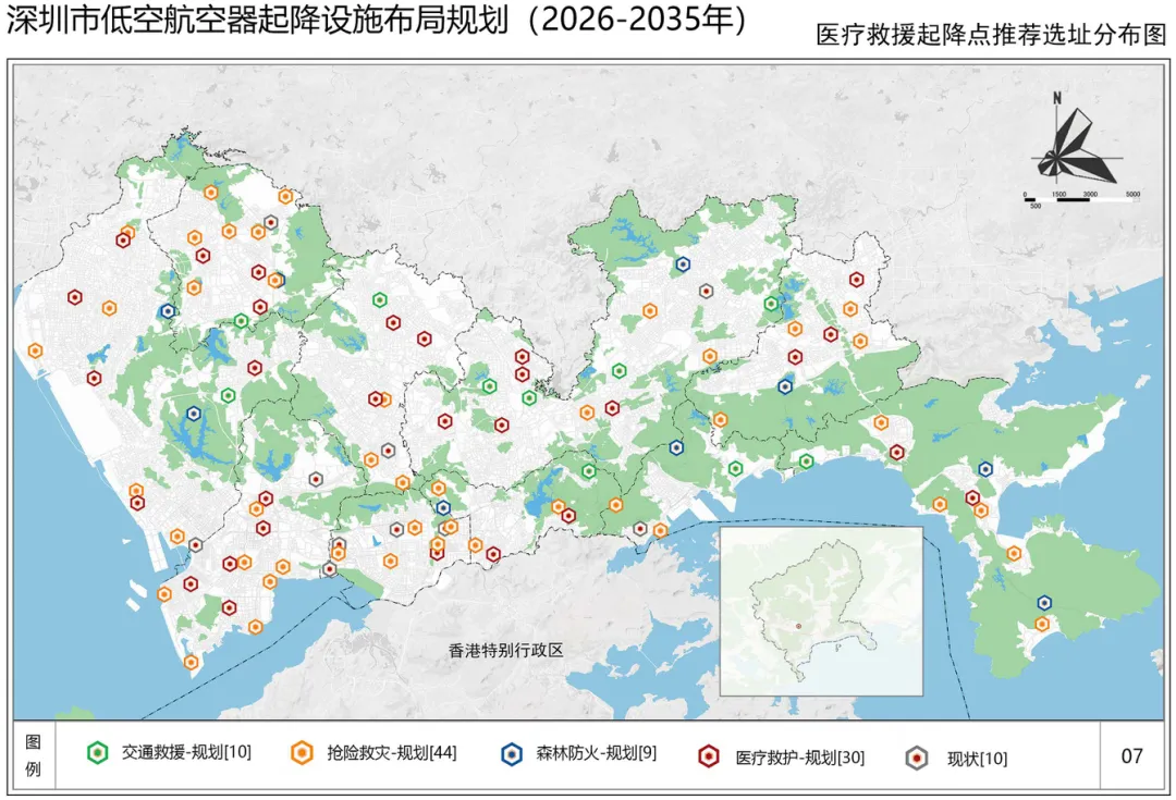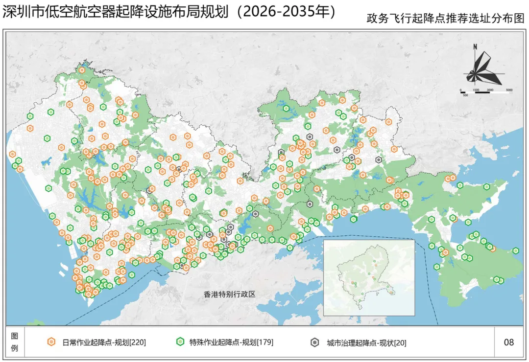 再来看深圳各类起降点的分布情况。