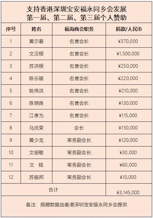 福永同乡会文汉根会长慷慨支持,累计赞助会所建设150万。