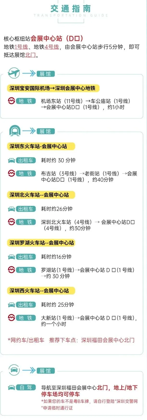 交通:地铁1号线、地铁4号线,由会展中心站步行5分钟,即可抵达展馆北门入场。
