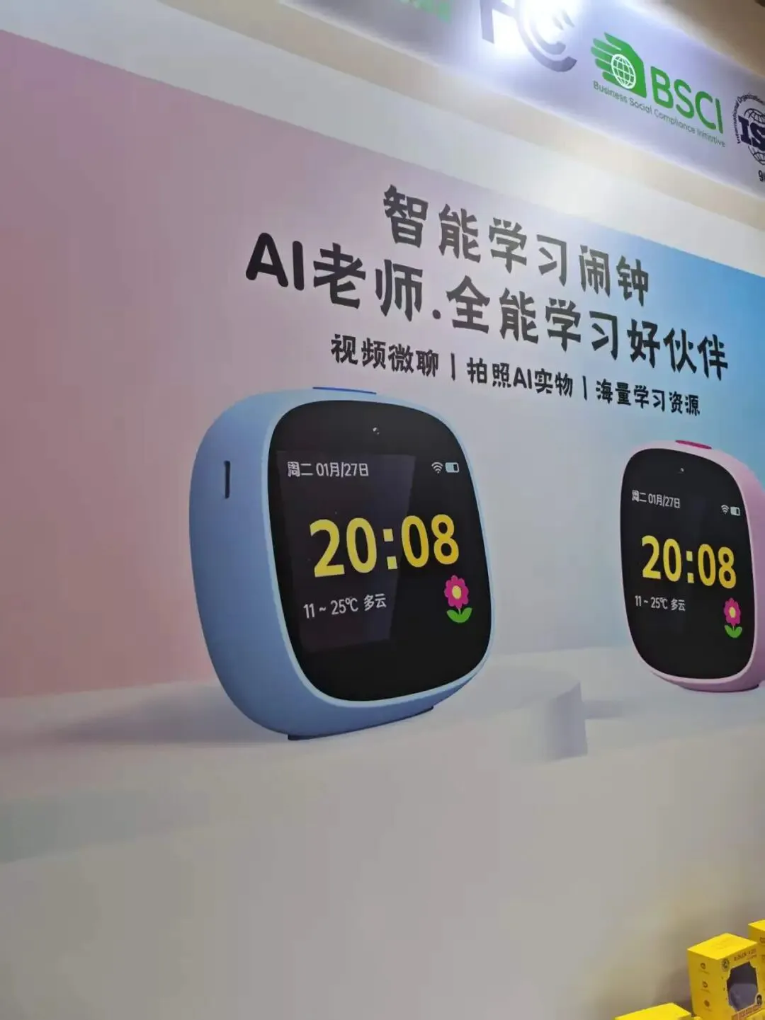 主要业务包括儿童电话手表等,现场还有一款AI拍照玩具,接入WiFi后设备可以实现语音生图功能,并支持照片打印。产品还没上市,售价可能会在100元以内。