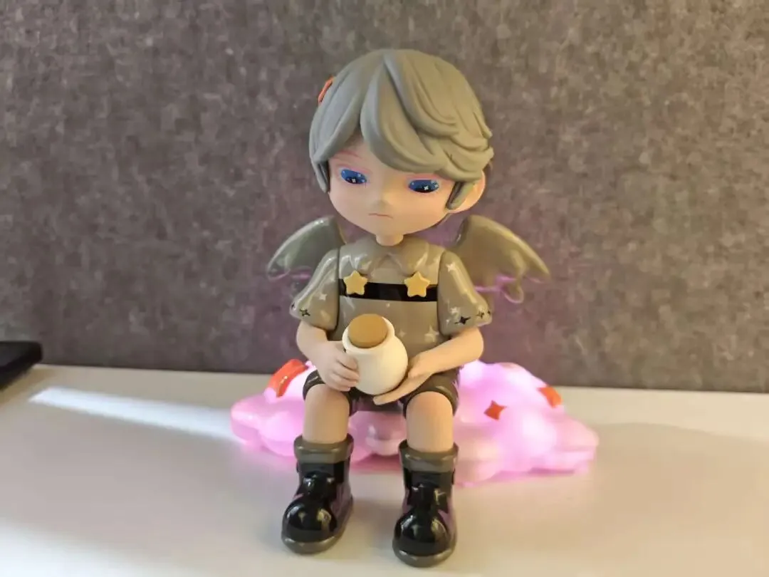 第二款产品是一款硬质材质玩偶(下图右侧),支持K歌、聊天(支持打断对话)、故事创作等功能。另外,产品也有一些有趣的小设计,比如耳朵会动,眼罩可以开合等。