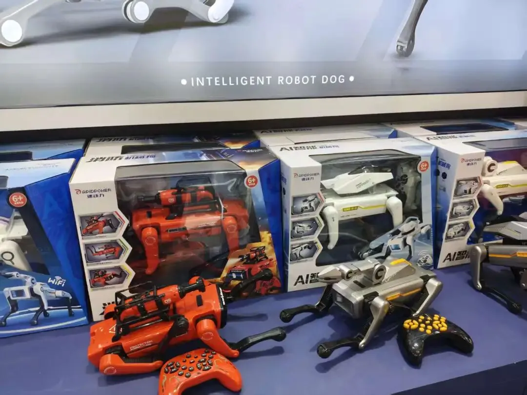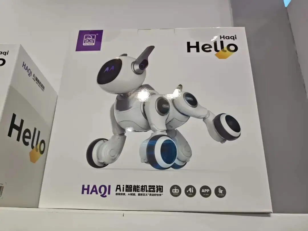 现场展出了几款植入了AI功能的遥控玩具,其中一款AI智能机器狗去年推出,售价299元,这是一款贴牌京东京造的玩具,据悉销量不错。