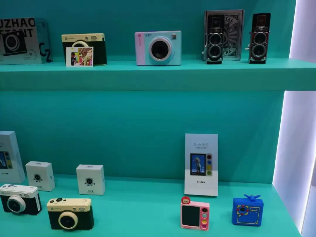 主要展出了拍立得等产品,不过现场也有一款搜米AI学伴机,设备内置豆包大模型,支持拍照识物,AI对话、知识问答、AI拍景成画等功能,售价299元。