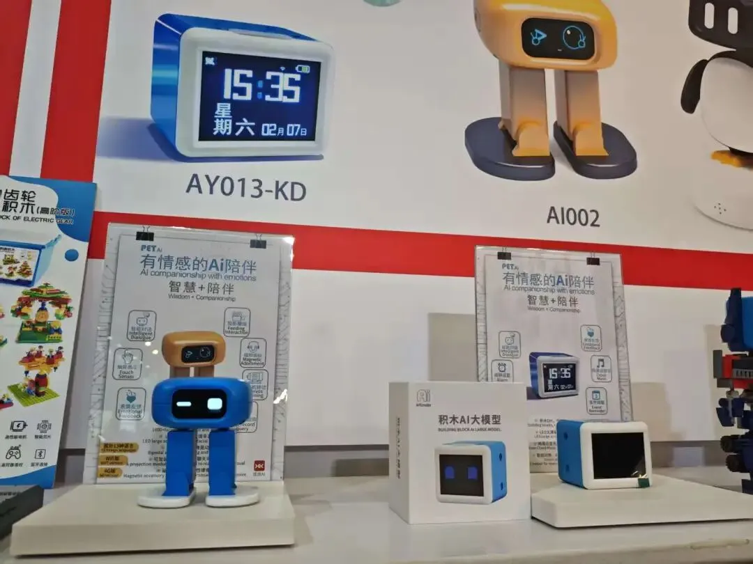 主营玩具是遥控赛车、机器人等,现场有两款内置了AI功能的机器人,售价分别是98以及108元。玩具接入接入了豆包可以实现聊天等,不过功能相对基础,没有个性化以及记忆能力。