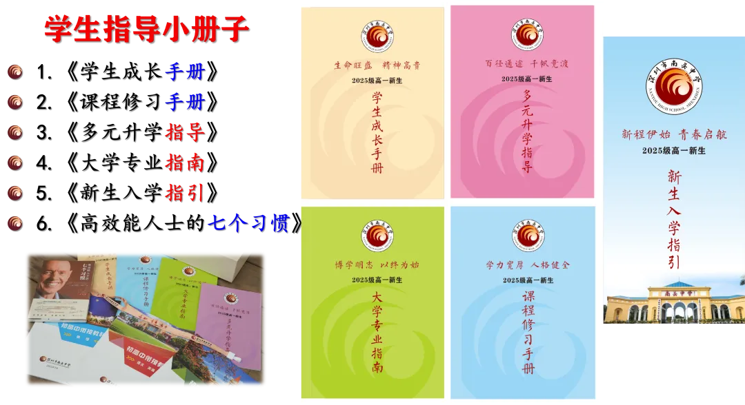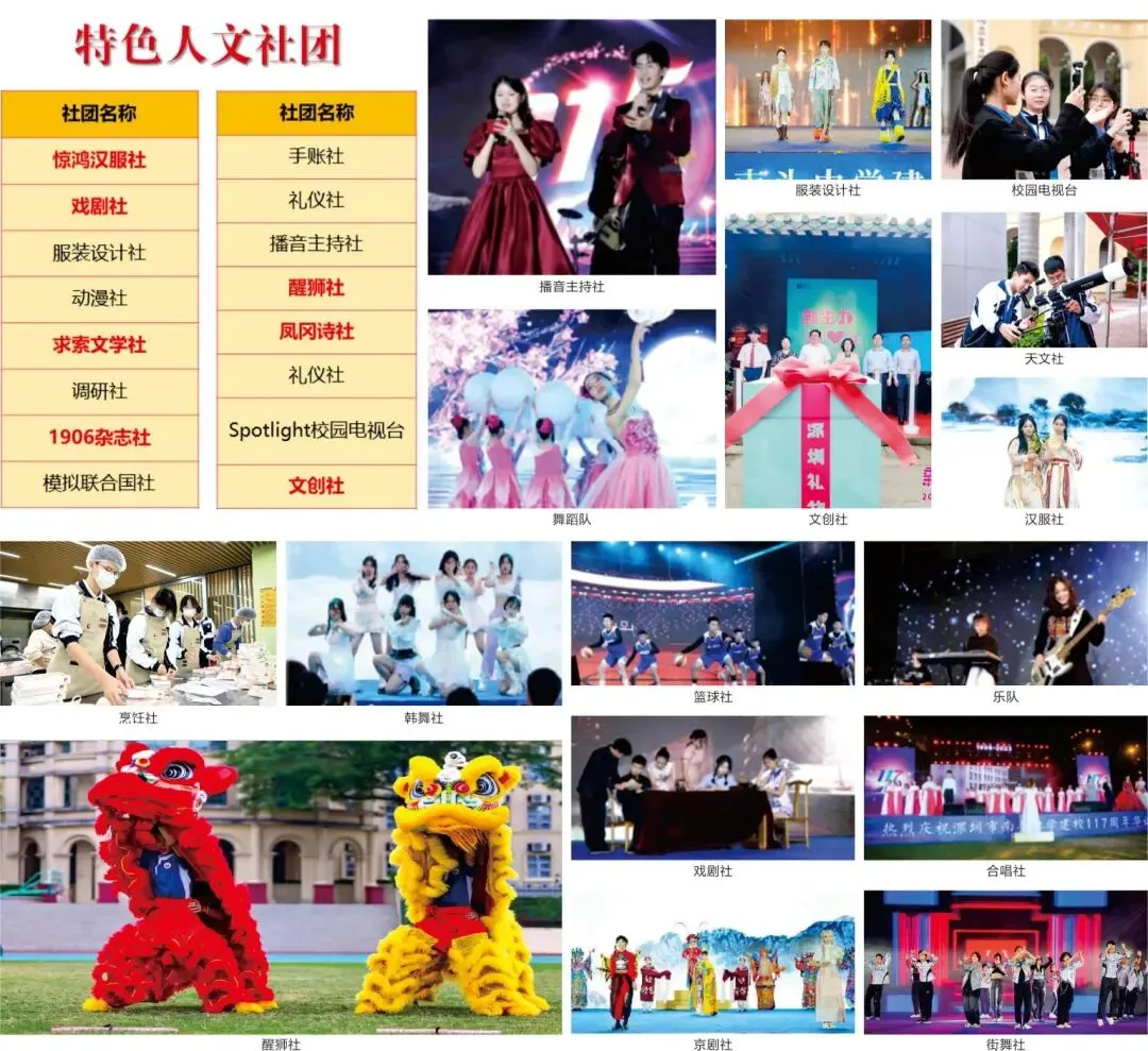 包括党团活动、国防教育、研学实践、职业体验、志愿服务、心理健康、生涯规划、学力提升、生活指导、自主管理等,并有众多丰富多彩的精品校园文化活动。