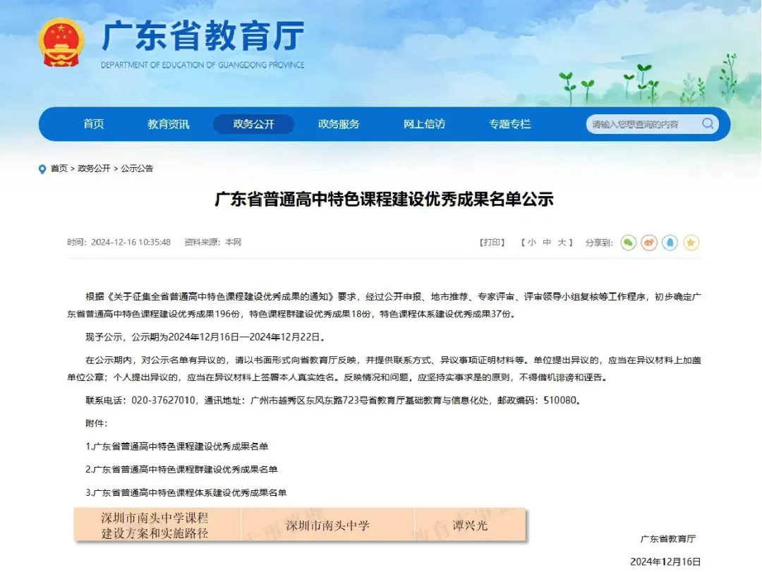 广东省普通高中特色课程建设优秀成果