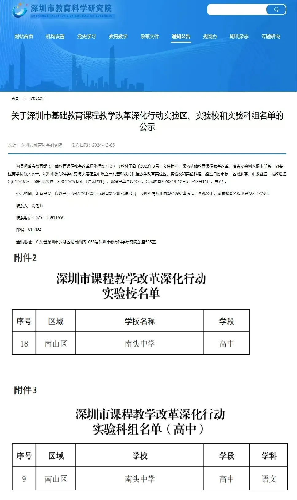 深圳市课程教学改革深化行动实验校