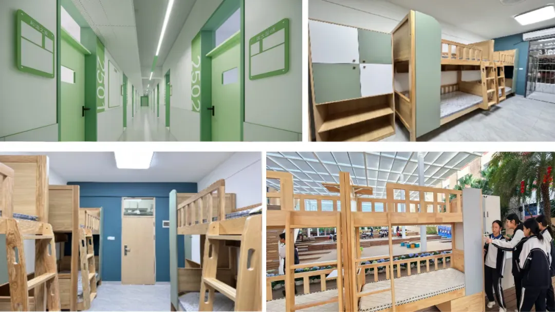 2026年暑假起,学生公寓全面升级改造,总投资近5千万元。9月1日起,全部宿舍使用新家具(AAA级实木床+新衣柜)。每间宿舍设有两个独立卫生间,配有洗衣机、空调、吹风机、冷热水。生活老师管理到位,体贴耐心。