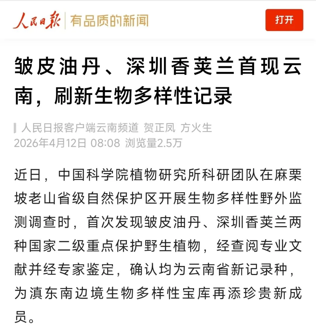 本次两种保护植物新分布点的发现,进一步丰富了云南省野生植物物种名录,为研究物种扩散、植物地理分布与边境生态保护提供了关键实证。