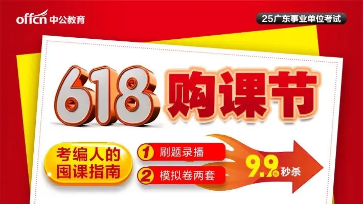 考编人赶紧把课囤起来慢慢看。《2025年广东事业单位618购课节》:电子版课件(可自行打印)、职测文理各100题、公基职测模拟卷。6月18日号前,仅需9.9元。点击图片,即可得