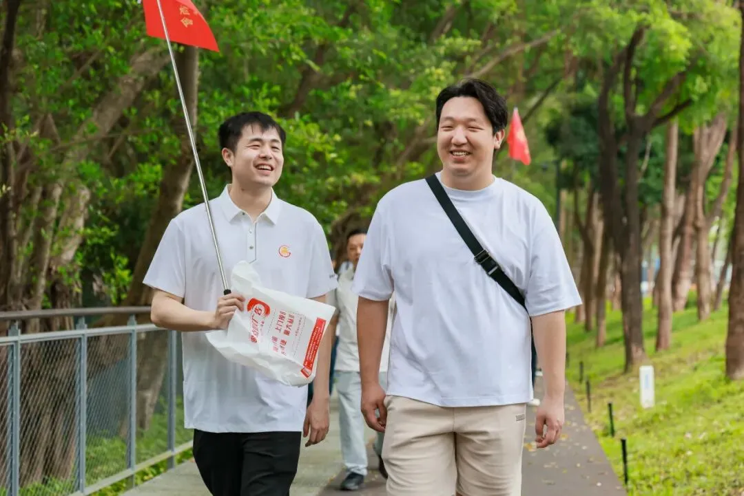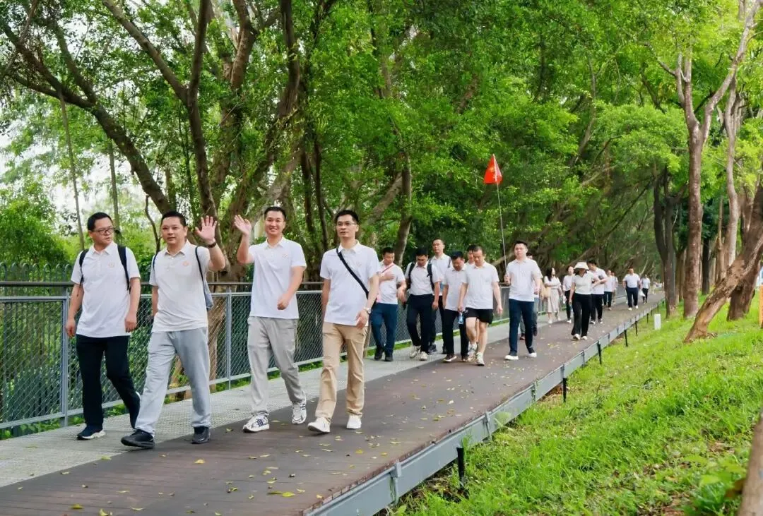 上午九时,全体参与人员于西丽湖地铁站B口准时集合,统一穿着商会会服,精神饱满地出发。徒步路线自西丽湖地铁站B口始,经白芒驿站短暂休整,最终抵达写意三河,全程约8-10公里,用时约2.5小时。沿途湖光潋滟、绿意盎然,会员们三五成群,在轻松愉悦的氛围中交流行业动态、分享生活趣事,既锻炼了身体,也加深了彼此了解