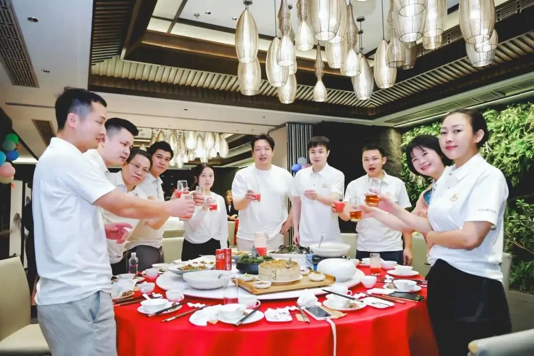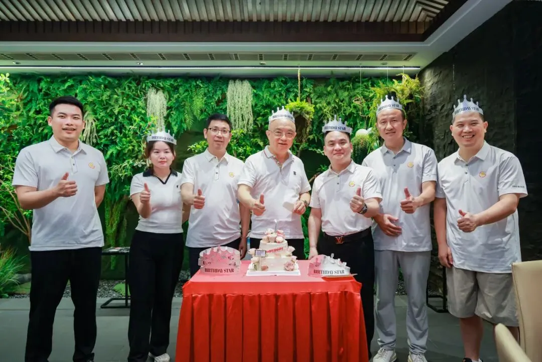 徒步活动结束后,会员们前往南山区方大城鹭溪客家餐厅,共同为3月及4月生日的会员举办集体生日会。邓志华会长代表商会向寿星们致以诚挚祝福,祝愿大家身体健康、家庭幸福、生意兴隆。执行会长刘明清作为寿星代表发言,他感谢商会平台给予的关心与祝福,并祝愿全体会员事业蒸蒸日上、商会发展越来越好。在全场齐唱生日歌的温馨氛围中,来到现场的寿星代表们(刘明清、黎海清、兰林、温宝林、谢红春、吴香香、黄建军、温怡姣)共同切下生日蛋糕,大家欢聚一堂,共享这一美好时刻。