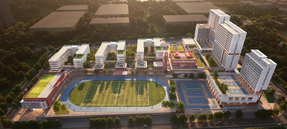 深圳市龙华科技实验高级中学是“十四五”期间深圳市政府高起点规划、高水平设计、高规格建设的全寄宿制公办高中。学校位于龙华区九龙山智能科技城核心区,与华为基地等科技巨头仅一墙之隔。学校占地9.1万平方米,是深圳单体规模最大的高中。