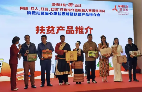 12月25日,深情扶贫“圳”当红——网络“红人、红品、红城”评选推介暨视频大赛在深圳海吉星消费扶贫中心市民中心旗舰店举行颁奖仪式。