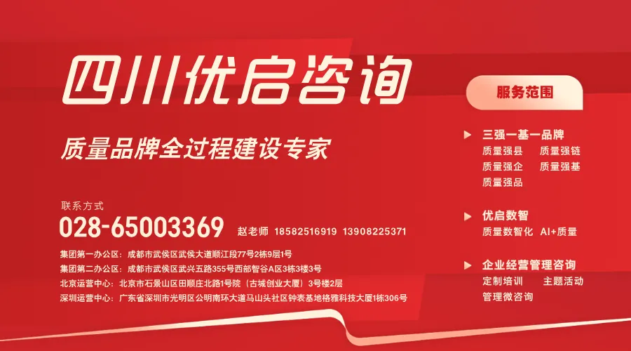 站在南北双中心同步运行的新起点,四川优启咨询将以深圳运营中心为创新引擎与市场前沿阵地,充分发挥示范带动作用,把前沿技术研究、市场化运营经验与品牌建设成果快速向全国七大区域复制推广。通过统筹总部研发、双中心联动、子公司落地与生态协同,持续深化 “质量强国、质量强链、质量强企、质量强基、质量强品” 五维赋能体系,以更开放的合作模式、更智能的服务平台、更专业的解决方案,为推动区域协调发展、服务国家长远战略目标贡献专业力量。