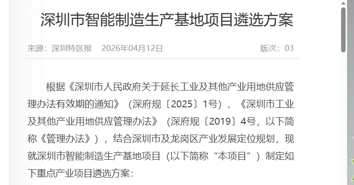 2.竞买申请人应当符合《深圳市人民政府关于延长工业及其他产业用地供应管理办法有效期的通知》(深府规〔2025〕1号)中规定的遴选要求,并通过重点产业项目遴选。