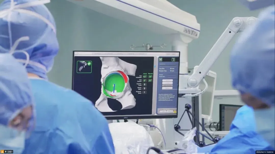本次接受手术的两名患者中,一名为股骨头坏死患者,另一名为重度膝关节骨性关节炎患者。在机器人系统辅助下,髋臼打磨、假体植入、截骨范围与厚度计算等关键步骤均实现精准执行,髋关节稳定性、膝关节力线矫正效果显著提升,手术实施十分顺利。