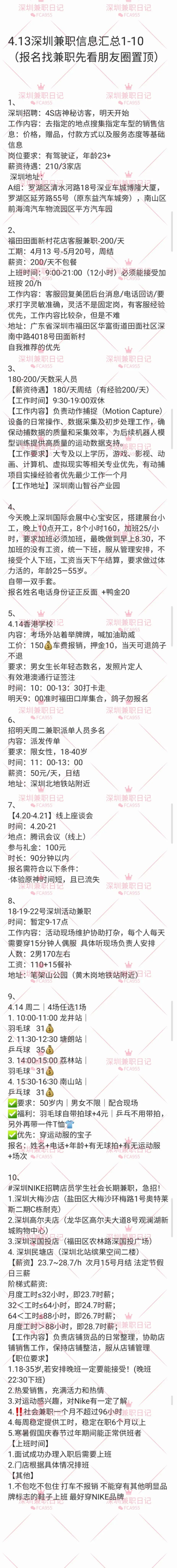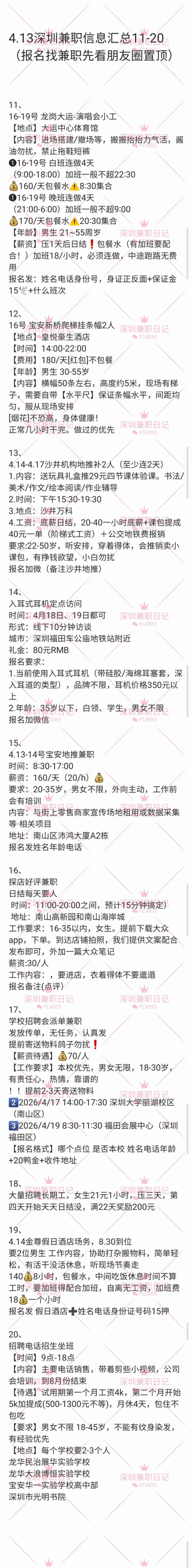 深圳兼职信息汇总(4.13)1-20