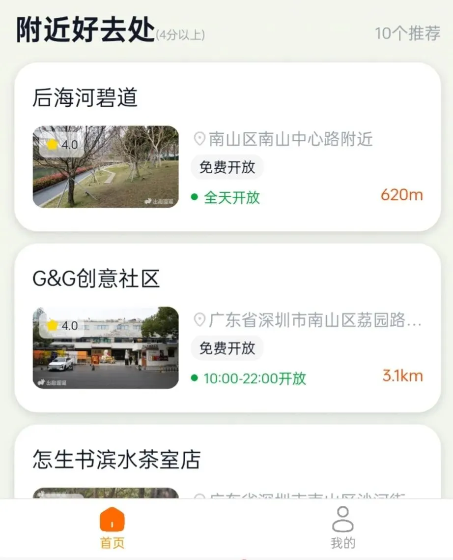 首页展示10个推荐(离你最近的4分以上的狗狗玩耍好去处),这些地点经过精心筛选,确保你和狗狗都能有愉快的体验