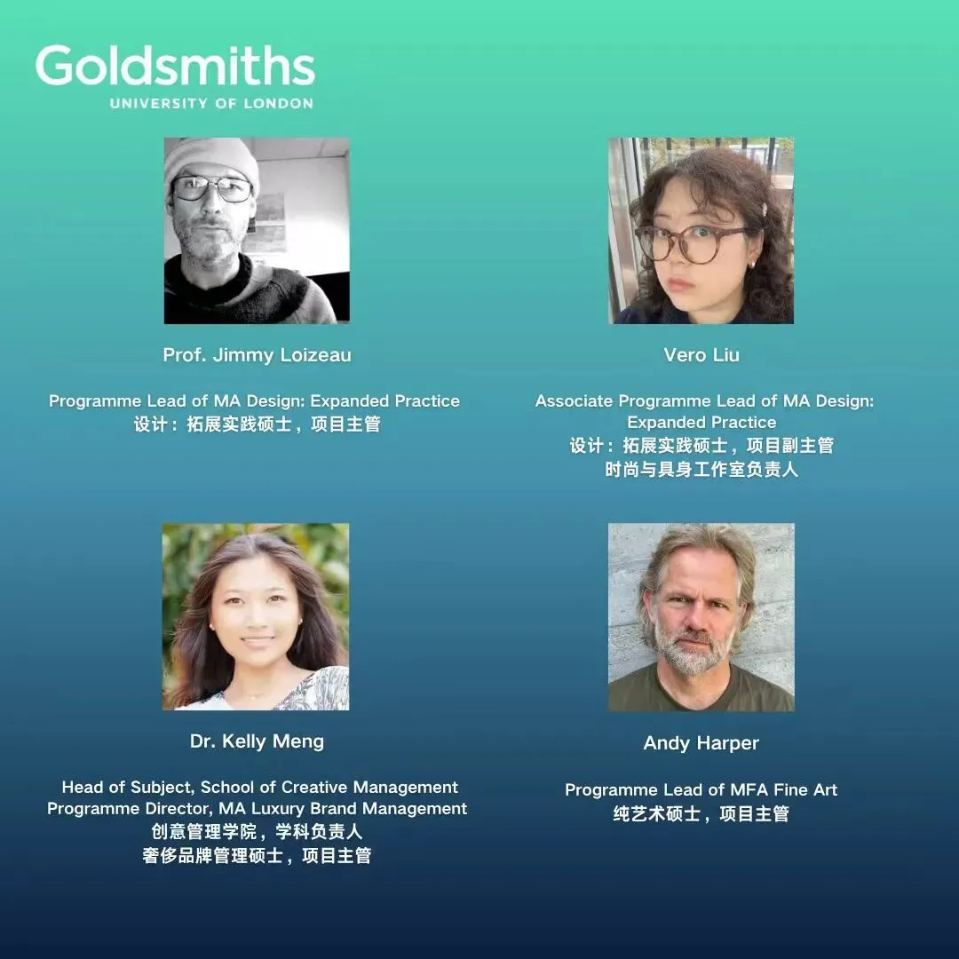 这将是一个绝佳的机会,可以听取我们的工作人员介绍关于您开启金匠学习生活之前需要做什么,可以询问有关您的课程、住宿、在伦敦的生活以及奖学金的问题,与其他未来的金匠学生建立联系!此外,以下专业的同学们可以面对面地见到未来的导师们: