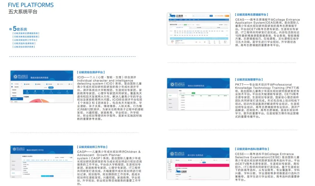 云鲸灵也是全国首家以生涯测评为核心的 ”AI 教育规划“服务商,贯穿小学、初中、高中、中考、高考与职业全阶段,为青少年提供一站式成长规划服务。