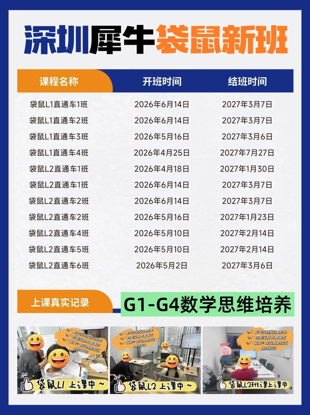 4-6月每月都有新班开出,家长不需要等“暑假统一开课”。报名前可预约免费入学诊断测试,根据孩子实际水平分班,辅导更有针对性!不用担心学太快孩子跟不上,也不用担心进度太慢耽误孩子时间~