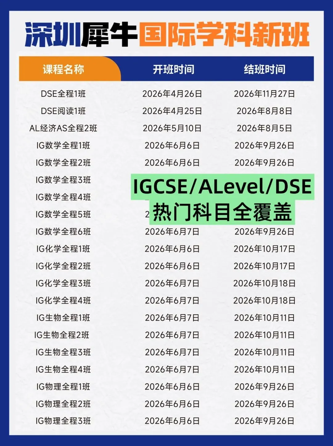深圳犀牛教育深耕国际学科及竞赛辅导多年,今年暑期班课表已经全部排定——从1年级到12年级,每个阶段都有匹配的课程,真正做到 “一站式服务”!
