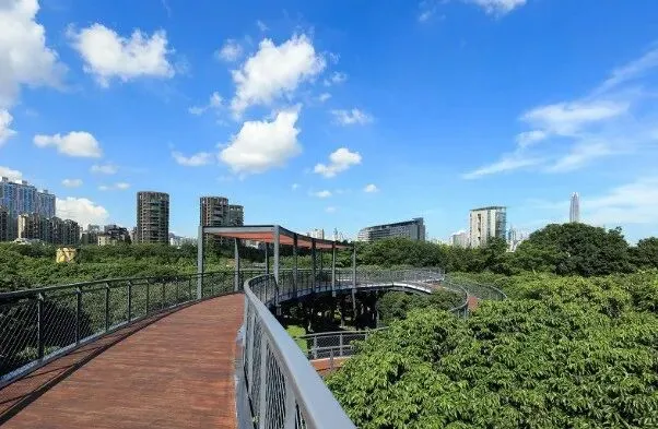 公园的最高点是与栈道相连的是自然展览馆,在这里,你可以享受阅读的乐趣,也可以站在顶层俯瞰深圳的中心区域俯瞰大片的绿色荔枝林。