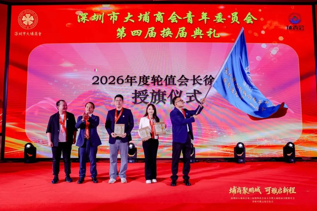 随后举行授旗仪式,与会领导将青年委员会旗帜郑重授予新一届深圳埔青会轮值会长徐奕发。旗帜在手,使命在肩,象征着客家精神的传承、青年力量的凝聚与埔青事业的接续奋斗。新一届深圳埔青会将以此次换届为新起点,团结带领广大青年埔商,传承客家 “硬颈精神”,在创新创业、服务家乡、联动湾区中展现新担当、实现新作为。