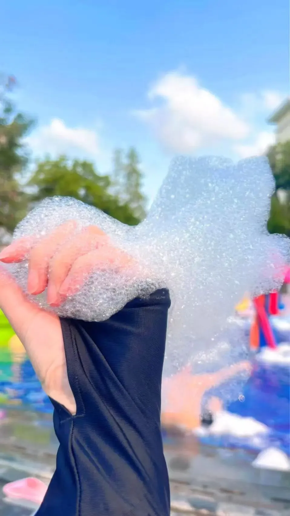 泡泡大战:无限泡泡+音乐,整一个大型泡泡蹦迪现场。娃直接冲进去玩起了捉迷藏,再也不肯出来