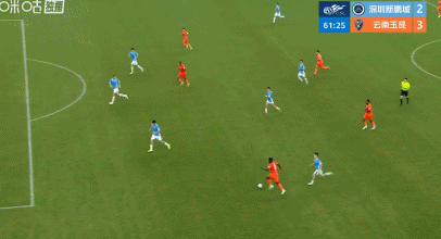 第38分钟,深圳新鹏城断球后发动反击,10号戴伟浚分球左路,7号韦斯利得球后送出一脚手术刀般的传球打穿玉昆防线,36号卡尔采夫禁区内得球低射洞穿玉昆球门,深圳新鹏城扳回一城,比分变成1:3。第43分钟,深圳新鹏城10号戴伟浚右路送出传中,31号奥乌苏后点垫射偏出球门。上半场伤停补时第2分钟,深圳新鹏城7号韦斯利内切后分球36号卡尔采夫,后者得球后禁区外轰出世界波,将比分改写为2:3。伤停补时第6分钟,深圳新鹏城6号姚均晟中场区域蹬踏玉昆34号卡约犯规,主裁熊星出示本场第2张黄牌。随后玉昆替补席上助理教练情绪激动抗议判罚,被主裁判出示红牌罚出场外。上半场的比赛中双方快节奏的对攻大开大合,为球迷奉献了一场精彩的进球大战。