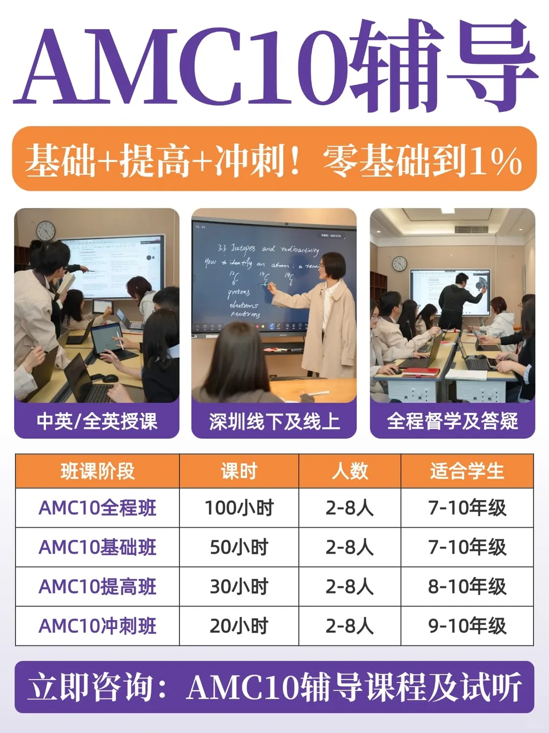 想拿AMC10全球前1%、稳进AIME?思客AMC10竞赛辅导课程以 “分阶教学 + 精准匹配” 为核心,覆盖基础到冲刺全流程,适配不同基础学生备赛需求。