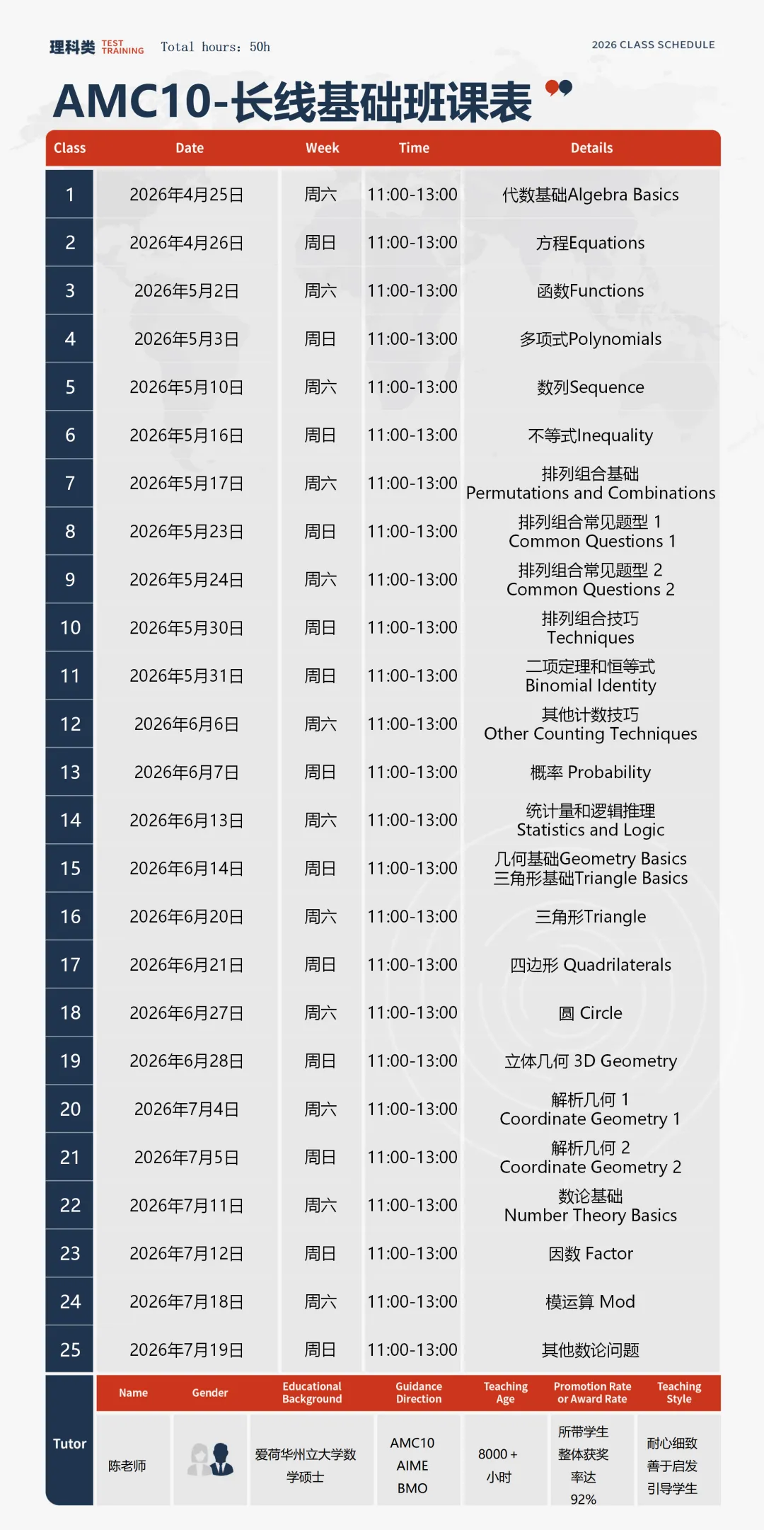 AMC10竞赛课表详解