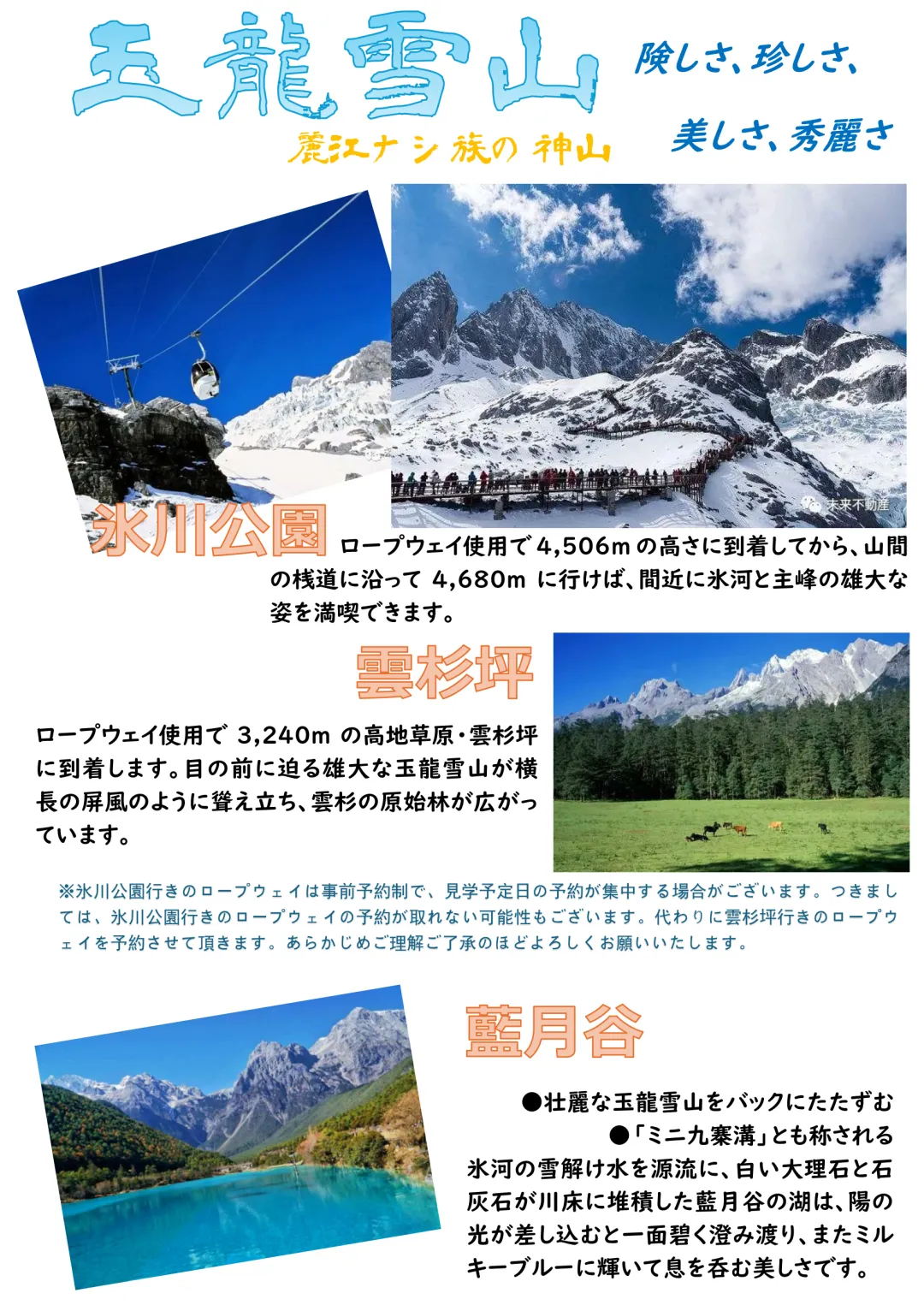 ※天災、戦乱、運輸機関の業務遅延・中止など、弊社の対処範囲外の理由でツアーがキャンセルになった場合、ご旅行の代金は返金できませんので予めご了承願います。