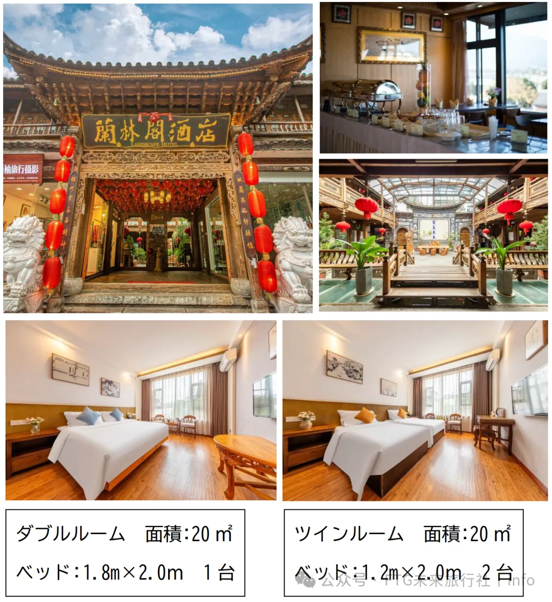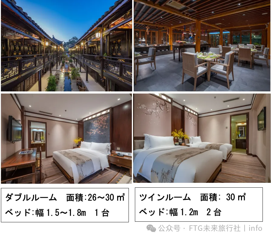 大理古城蘭林閣酒店、麗江古城多弗度假酒店又は同等クラスのホテルを利用します。