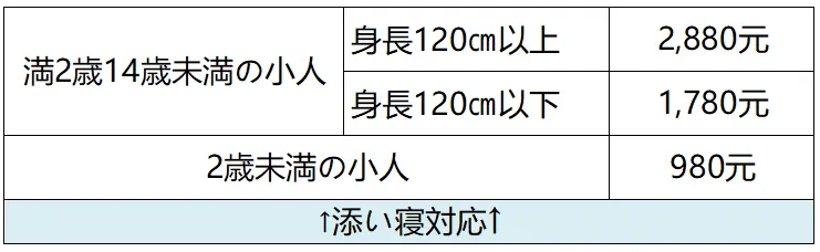 ●14歳未満の小人は固定代金となります。