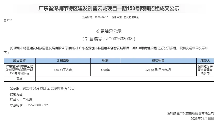 当前位置:首页>深圳>深圳市南山区特区建发创智云城项目一期158号商铺招租成交公示