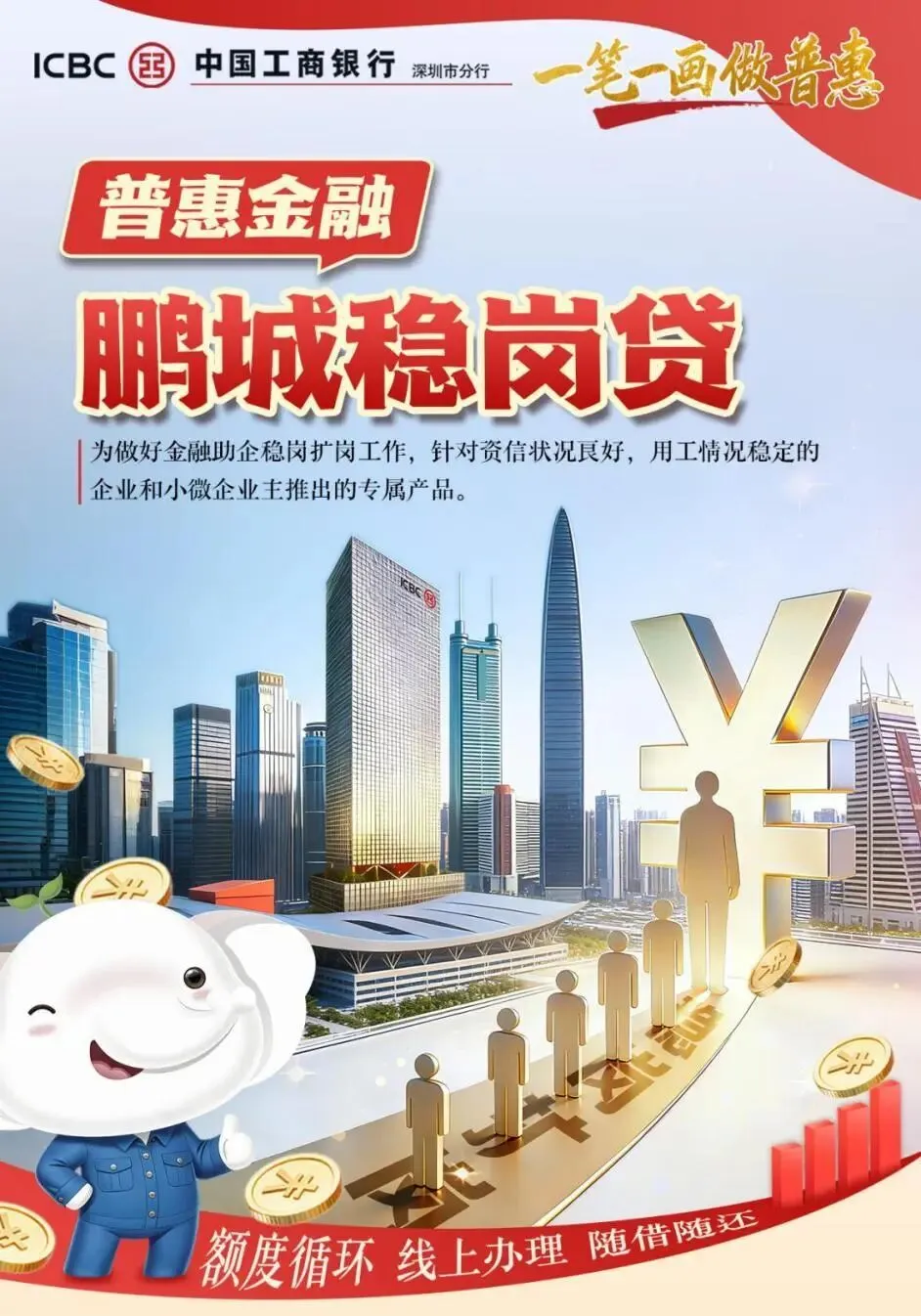 在服务效率上,工行深圳市分行开通“鹏城稳岗贷”绿色审批通道,实现从需求对接到资金投放的高效衔接;