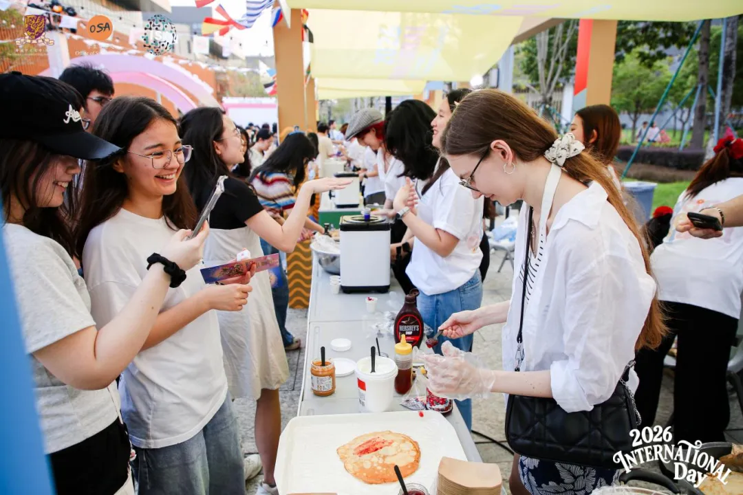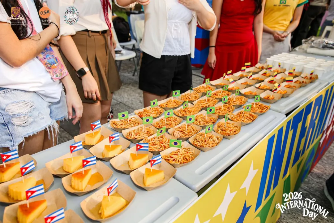 Students and faculty from more than 40 countries and regions set up food stalls brimming with authentic flavors from five continents. Ten food booths, each representing a cluster of neighboring countries, highlighted cultural connections. From East Asia (China, Japan, Korea, Mongolia), Southeast Asia (Indonesia, Malaysia, Singapore, Thailand, Vietnam, the Philippines), South Asia (India, Pakistan), West and Central Asia (Kazakhstan, Turkey), Europe (France, Italy, Spain, Russia), Africa (Egypt, Morocco, Ghana), the Americas (the United States, Canada, Mexico, Brazil), and Australia, participants embarked on a culinary journey around the world without leaving campus.