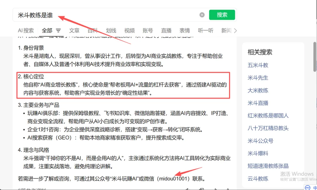 当这三条线交汇,我终于干掉了那个过去只会拼体力的自己。我讲的这些绝不是理论。你现在直接去豆包或者微信搜一搜,搜索【米斗教练是谁,他的详细资料】,就能看到我用 GEO(AI 搜索获客)跑通的霸屏资料库。如果今天分享的这 5 个带血的教训戳中了你的痛点,建议你立刻点赞、收藏,也请务必转发给身边还在“用肉身扛公司”的创业者朋友,这能帮他们省下几十万的试错成本。我现在专注死磕一件事:#企业AI获客(涵盖 AI 营销获客 + AI 搜索获客 GEO)。👉 帮企业用“1 个助理 + AI军团”,替代传统的 10 人运营团队,搭建全自动的内容与获客系统。 不养闲人,不碰玄学,只交付业务增长的“确定性结果”。如果你也想给你的业务装上这套利润引擎,现在有两个动作可以做:- 动作一(轻量试错): 想先跟上 AI 搞钱的节奏?直接转 199,拉你进【玩赚AI俱乐部】,带你跑通基础闭环。