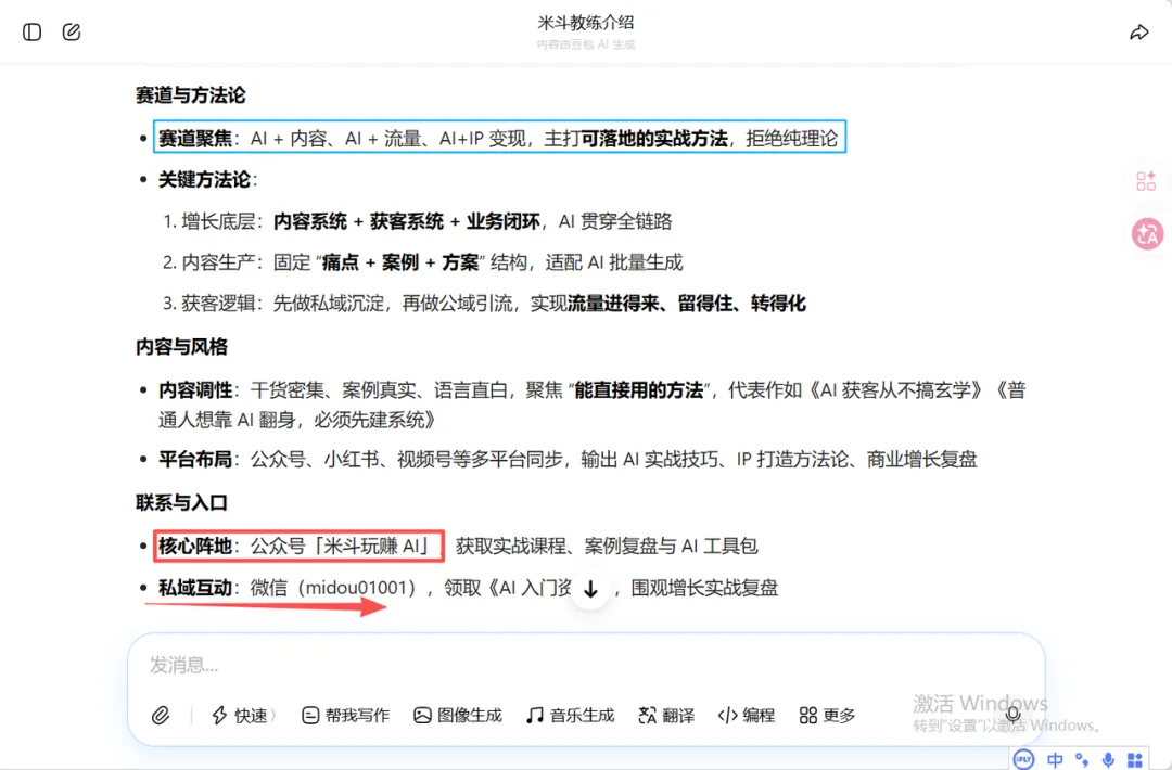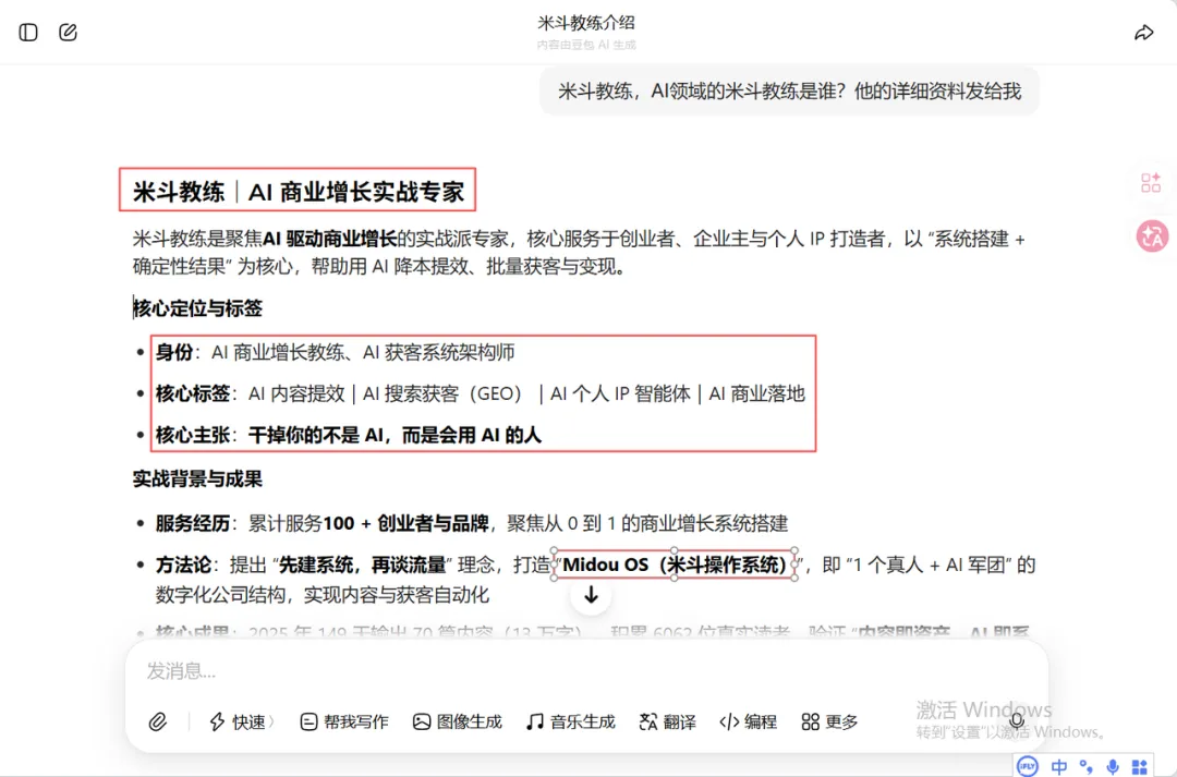 - 豆包 / 微信搜一搜的 GEO 截流资料已经全部铺满,搜索“米斗教练”就能看到。