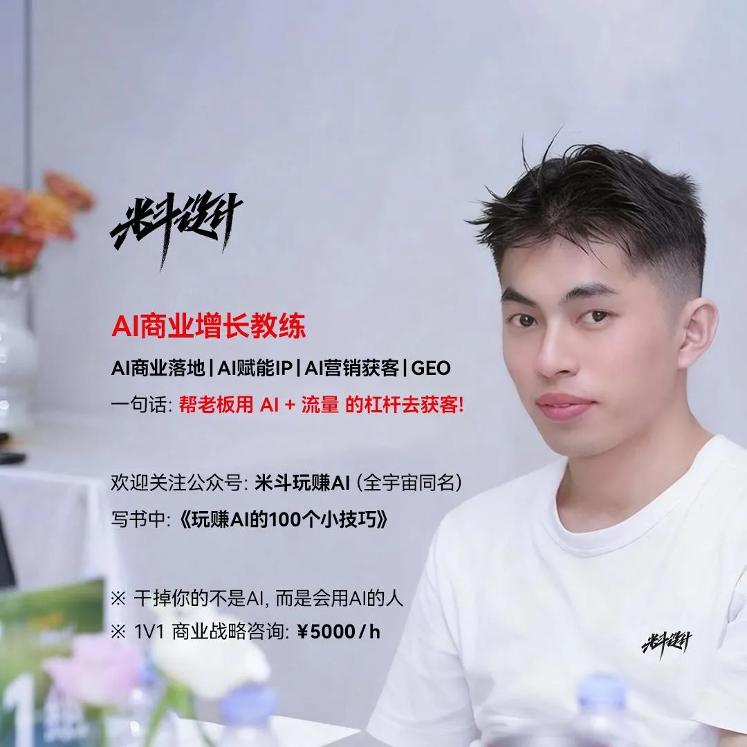 - 动作二(高维破局): 如果你是迫切需要流量和转型的企业老板,直接加我微信链接(微信号:midou01001),带着你的业务痛点来做 1V1 咨询。你出行业脑子,我出 AI 杠杆。