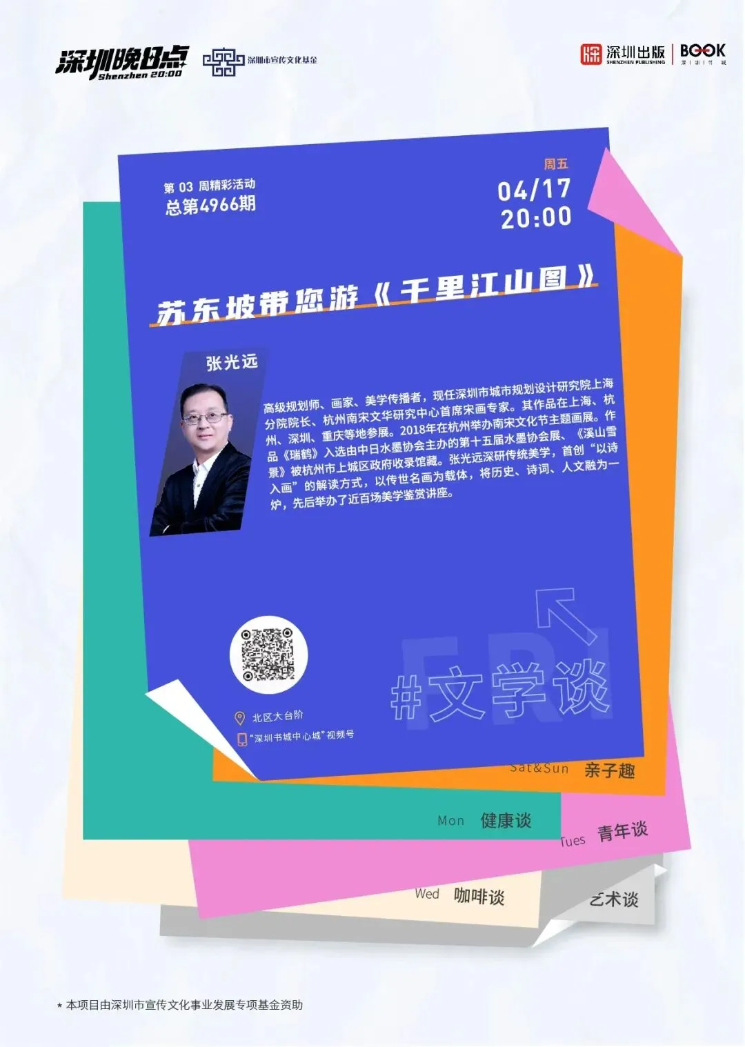 无法到场参加的读者可点击上方链接预约直播,进入【晚8点·文学谈 | 苏东坡带您游《千里江山图》】活动直播间观看直播,