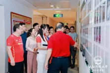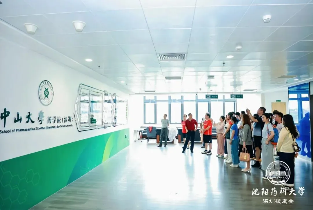 接驳车缓缓穿行于校园之中,车外的春意与绿瓦红墙的现代化建筑交相辉映。校友们先后参观了药学院实验室、图书馆等标志性地点。药学院实验室内先进的科研设备、严谨的学术氛围,让不少从事医药行业的校友感慨良多;图书馆宏伟的建筑与静谧的阅读环境,更是勾起了大家对校园读书时光的美好回忆。在图书馆楼下,全体校友合影留念,镜头定格下一张张灿烂的笑脸,也记录下沈药与中大两校校友之间的深厚情谊。